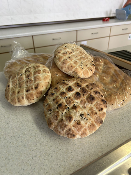 Natürlich durfte auch das Fladenbrot nicht fehlen. Dieses wurde aufgewärmt und anschließend nach Belieben gefüllt. Dabei zeigte sich schnell, wie wichtig Organisation und Teamarbeit in der Küche sind.