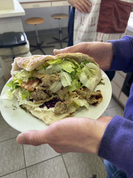 Am Ende konnten alle stolz ihr Ergebnis probieren. Der selbstgemachte Döner kam bei allen gut an und hat gezeigt: Mit etwas Planung und Zusammenarbeit lassen sich auch beliebte Gerichte ganz einfach selbst herstellen.
