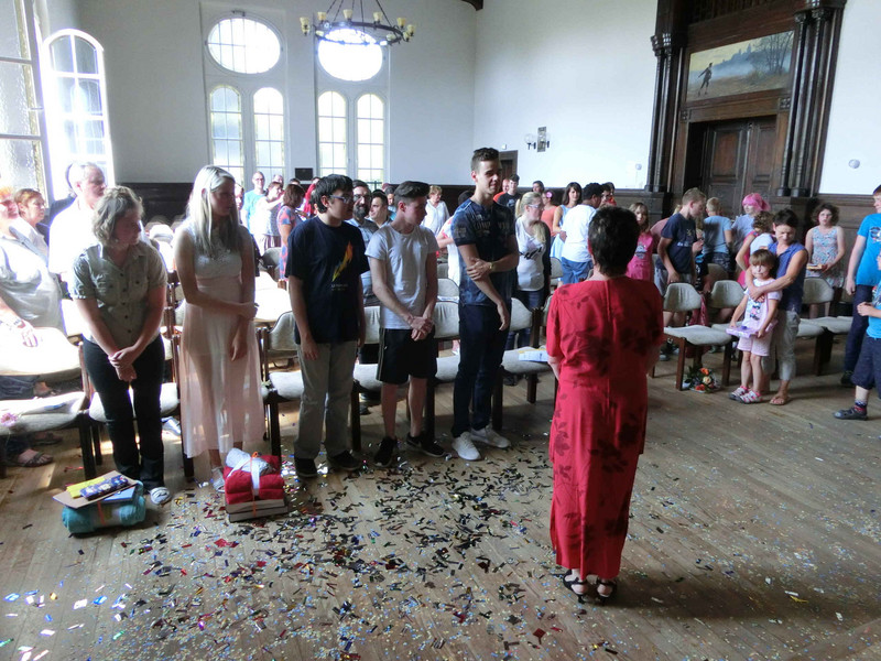 Auch am Ende dieses Schuljahres haben wir wieder Schüler und Schülerinnen mit lachenden und vielen weinenden Augen verabschiedet, die erfolgreich 12Jahre Schulzeit absolviert haben und nun auf dem Weg zum Erwachsenwerden neue Pfade einschlagen. Unsere nun ehemaligen Schülerinnen und Schüler gehen dabei unterschiedliche Wege. Die einen beginnen im Semptember ihre Ausbildung im Rahmen der Werkstatt für Menschen mit Behinderungen, andere beginnen eine Ausbildung in der freien Wirtschaft. Allen wünschen wir von Herzen auf ihren Wegen alles Gute und wünschen uns sehr, sie regelmäßig wiederzusehen.