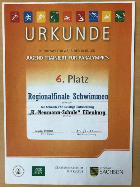 Auch dieses Jahr haben wir mit unserem Schulschwimmteam wieder am Regionalamtsfinale teilgenommen. Gegen die Waldschule Grimma ist immer noch kein Kraut gewachsen. Wir sind trotzdem stolz auf unseren erreichten sechsten Platz und wünschen den beiden ersten Platzierten alles Gute und viel Erfolg beim Landesfinale in Bautzen.