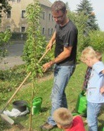 Klasse 1 pflanzt einen Pflaumen- und Kirschbaum