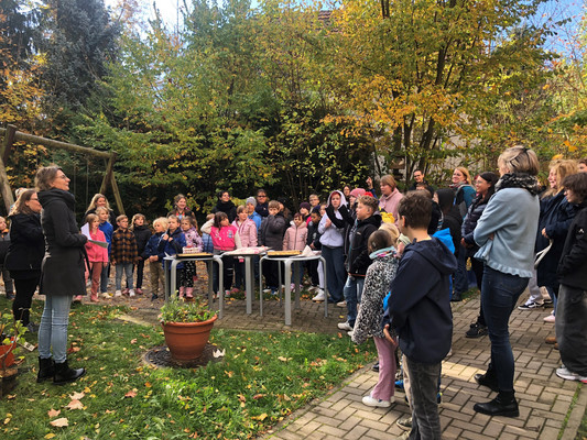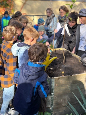 Am 21.10.2025 haben wir im Rahmen der Pflanzaktion der Kulturhauptstadt zwei Apfelbäume in unserem Schulgarten eingepflanzt. Außerdem wurden unserer Schule 5 Beerensträucher übergeben. Alle Pflanzen erhalten ihren endgültigen Platz nach der Umgestaltung unseres Schulgartens.