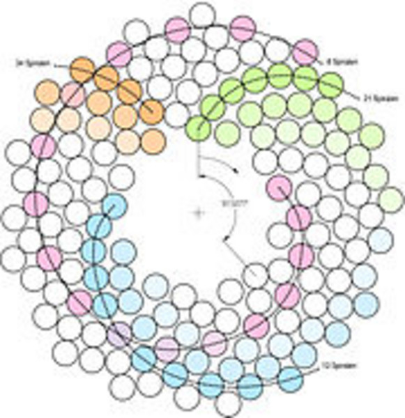 Tatsächlich! Es ist erstaunlich, wie sich Mathematik in der Natur widerspiegelt. Leonardo Fibonacci, ein bedeutender Mathematiker des Mittelalters (1170-1240 ) hat dies beobachtet und eine nach ihm benannte Zahlenreihe aufgestellt. Die Fibonacci-Folge ist die unendliche Folge natürlicher Zahlen, die mit zweimal der Zahl 1 beginnt, und bei der jede Zahl die Summe der beiden ihr vorangehenden Zahlen ist. Also 1, 1, 2, 3, 5, 8, 13, 21, 34, 55, 89...u.s.w. Die bemerkenswerte Besonderheit findet sich in Wachstumsvorgängen auf einer Ananasschale, einem Tannenzapfen oder in einer Sonnenblume wieder.