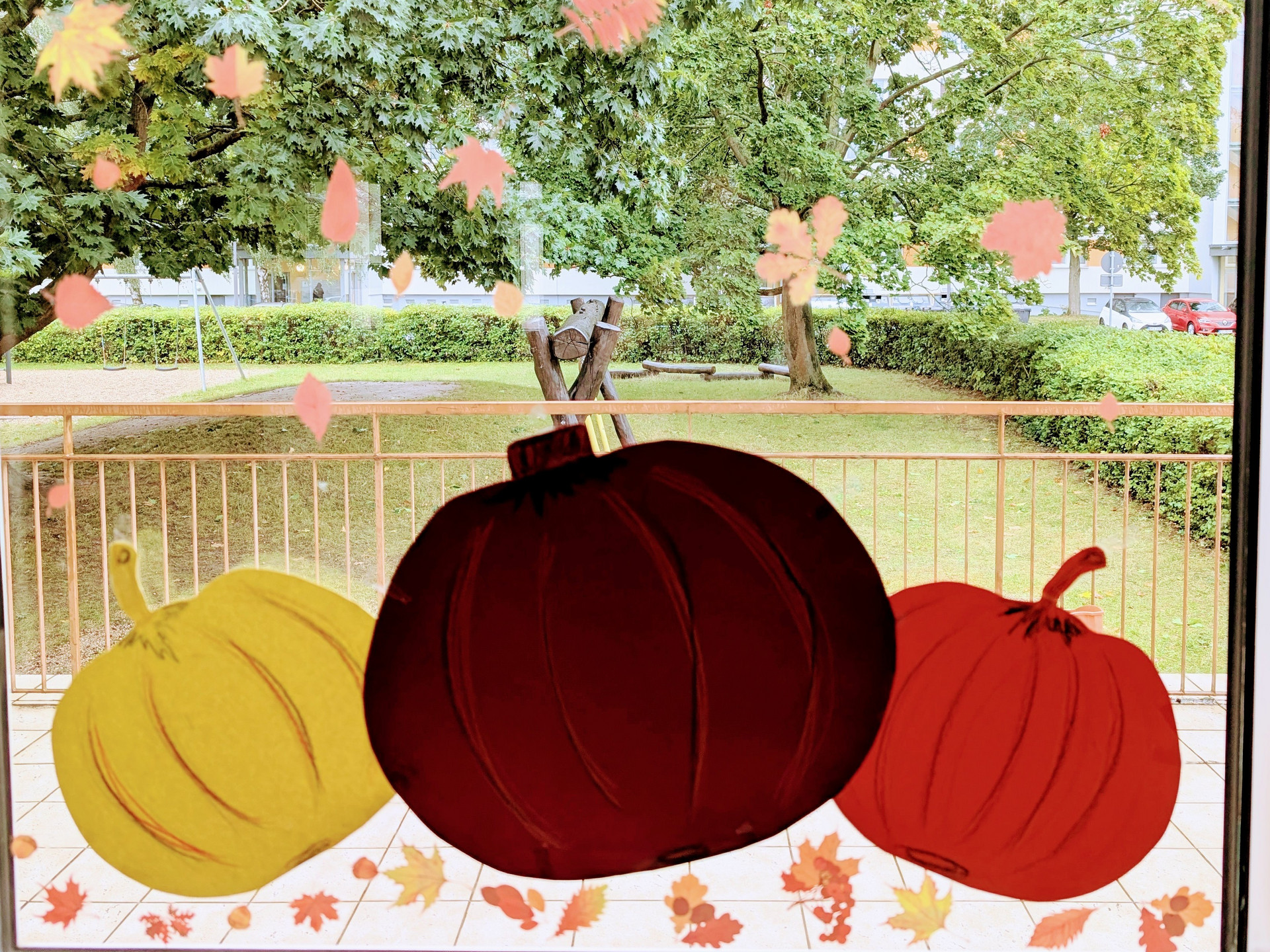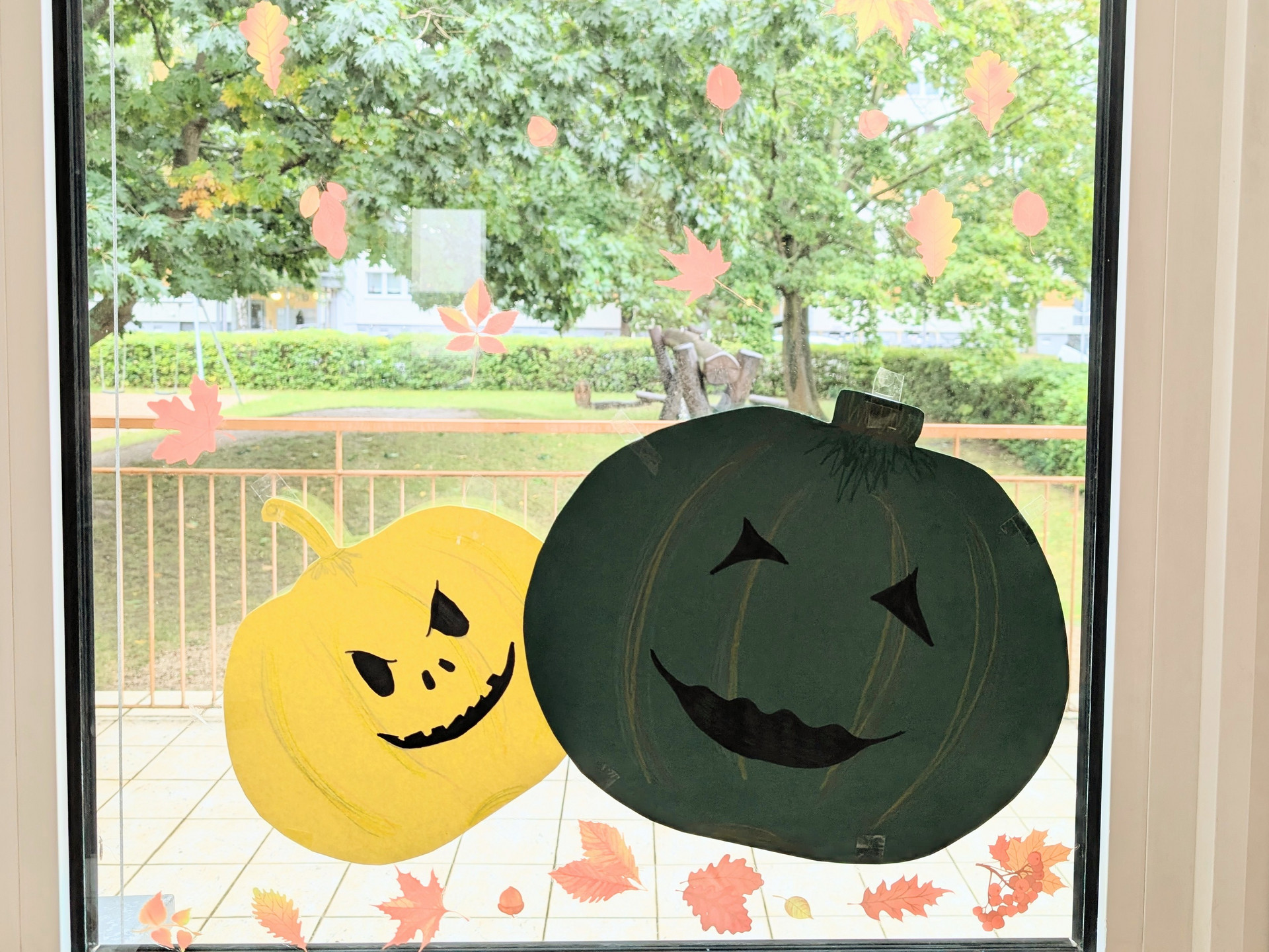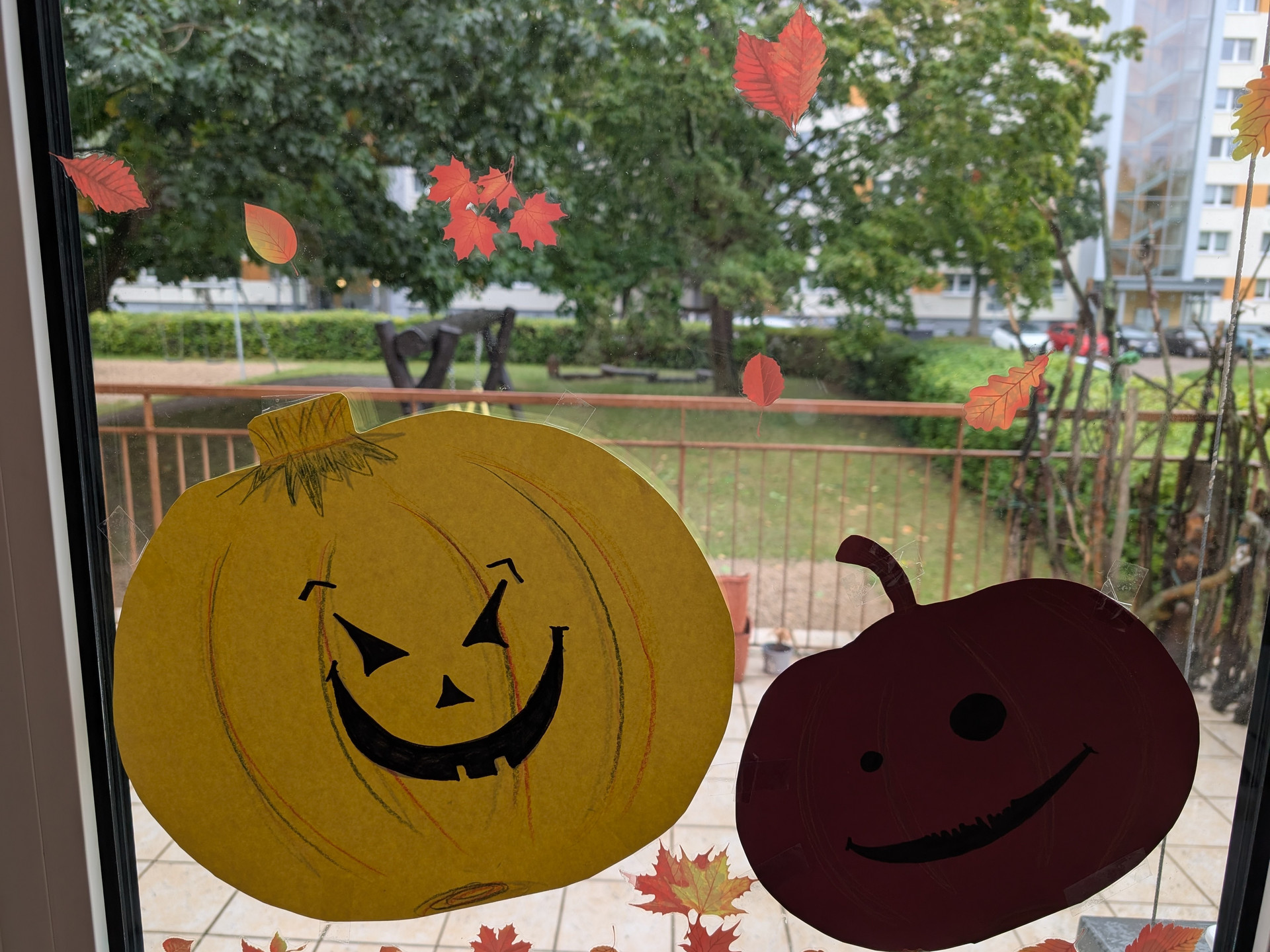 An Fenstern und Wänden schmücken nun bunte Blätter, lustige Kürbisse und viele weitere Herbstmotive unser Schulhaus.