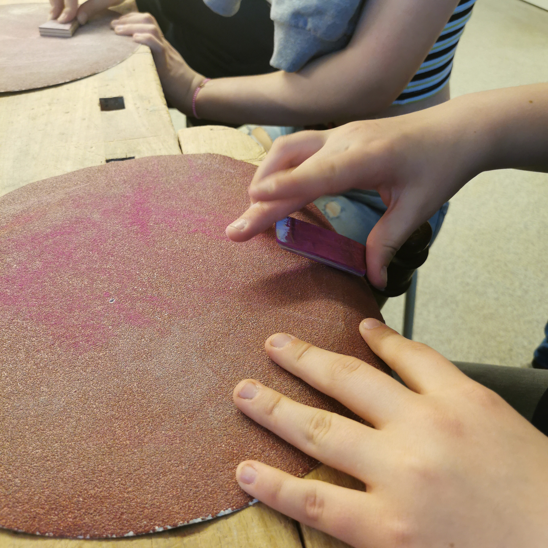 Im Projektzeitraum vom 11.03. bis 07.06.2024 wird mittwochs in der Werkstufe und freitags in der Oberstufe 90 Minuten gewerkelt. Die Schüler*innen haben viel Freude daran, ihre persönlichen Gravuren auf ihren Werken anzubringen. Das Bohren der Löcher für die Schlüsselringe und das abschließende Einreiben mit Bienenwachs verleiht den Objekten nicht nur eine professionelle Note, sondern sorgt auch dafür, dass sie lange Zeit schön aussehen und genutzt werden können.