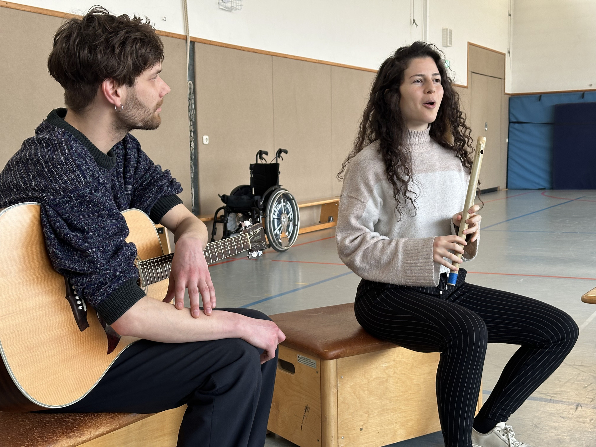 Bereits am 25. März 2025 hatten uns zwei Musiker der Banda Comunale besucht. Sie spielten Querflöte und Gitarre und zeigten eindrucksvoll, wie Musik Menschen aus unterschiedlichen Ländern und Kulturen verbindet. Gemeinsam wurde geklatscht, getrommelt, Musikspiele ausprobiert und entdeckt, wie man mit dem eigenen Körper Klänge erzeugen kann.
