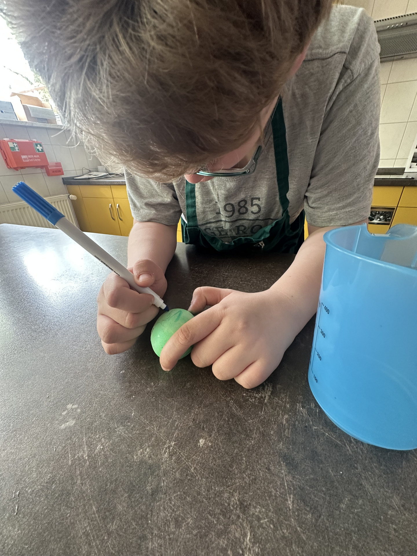Die Schleckermäulchen hatten vor den Osterferien viel Spaß beim Eierfärben! Zuerst haben wir Eier mit bunter Kaltfarbe gefärbt – ganz klassisch. Dann haben wir etwas Neues ausprobiert: die Reis-Methode. Dafür haben wir Reis mit Lebensmittelfarbe gemischt und die Eier darin gewälzt. So sind tolle marmorierte Muster entstanden. Zum Schluss durften wir unsere Kunstwerke noch mit bunten Lebensmittelfarbstiften verzieren. Die Eier sahen richtig schön aus – und wir waren stolz auf unsere bunten Werke!