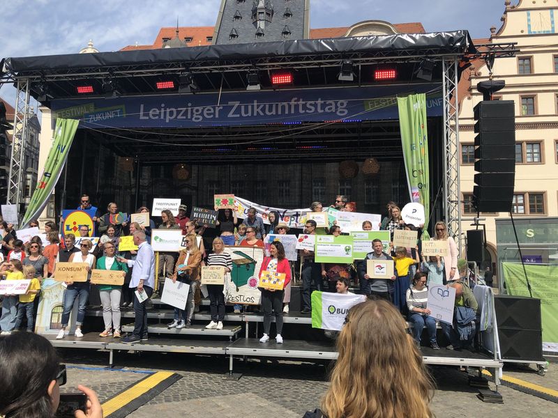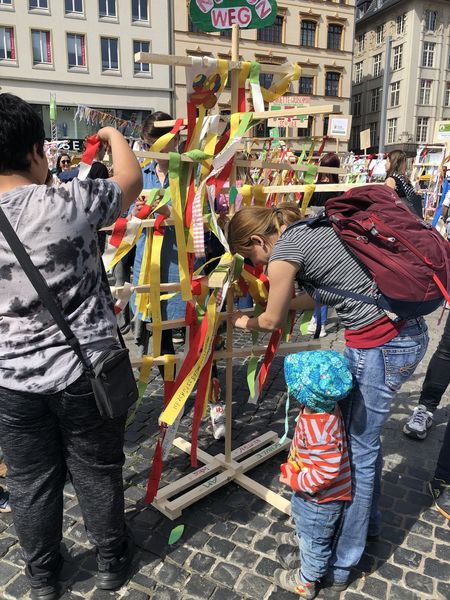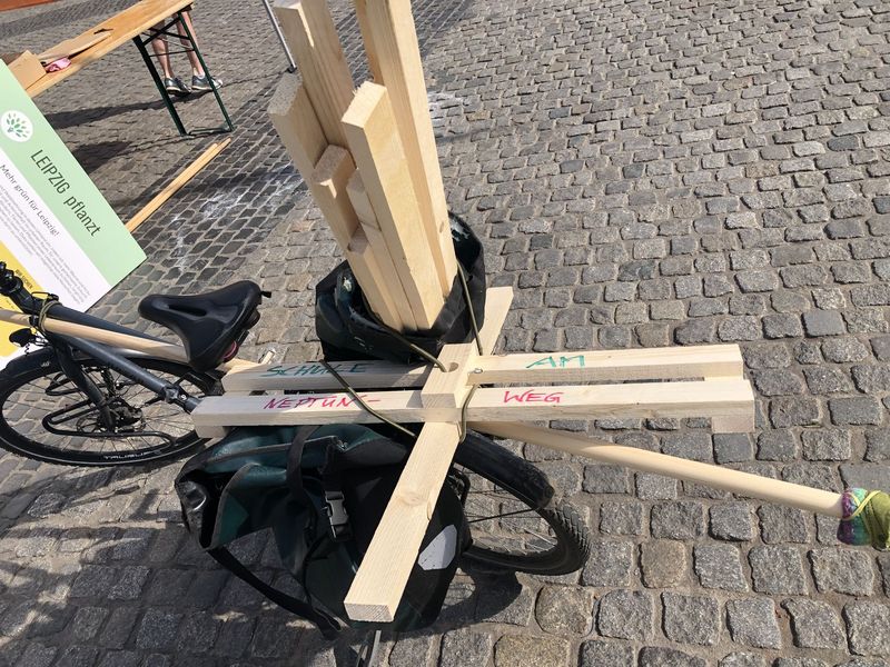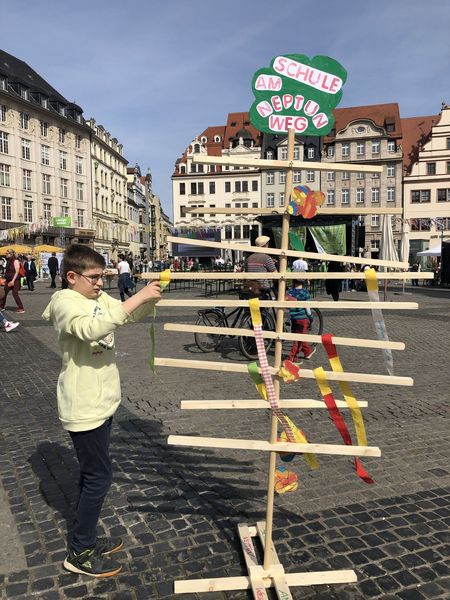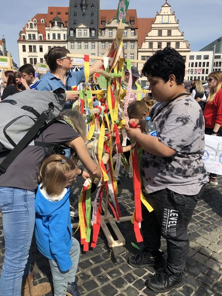 Mit unserem Zukunftstbaum aus der Projektwoche präsentieren wir uns auf dem Leipziger Zukunftstag. Auf dem Marktplatz entsteht ein ganzer Zukunftswald!