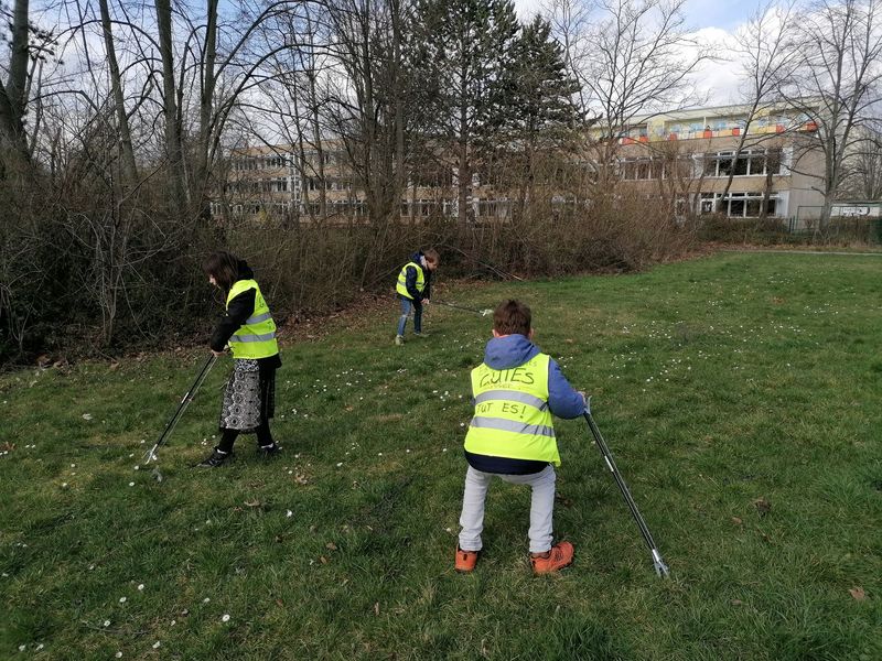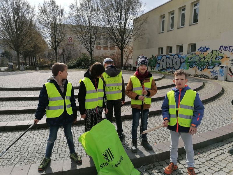 Die Klassen beteiligten sich am Leipziger Frühjahrsputz und sammelten Müll in der Schulumgebung. Viele waren schockiert über den vielen Müll, den sie gefunden haben.