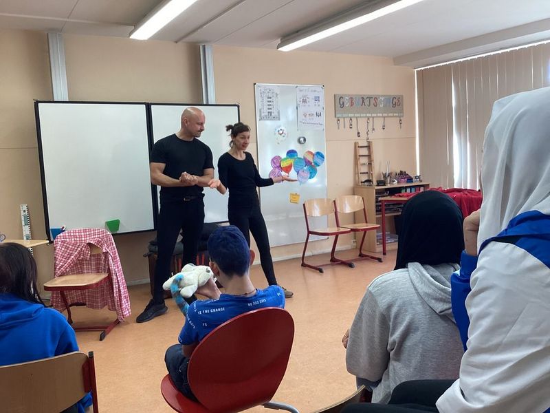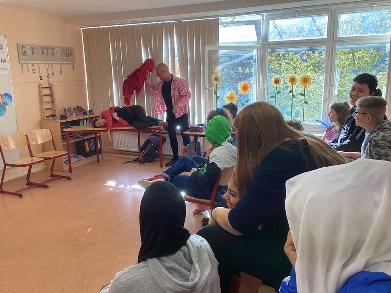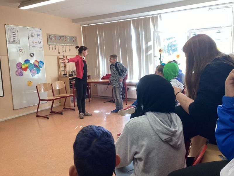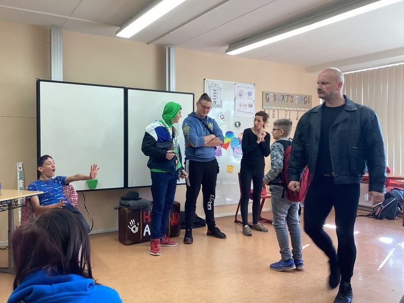 Heute war das Theaterprojekt "Hau ab" in unserer Schule. Das interaktive Theaterstück fand in unseren Klassenzimmern statt. Es ging um fremde Täter und familiäre Grenzüberschreitungen. Die Schüler schauten Szenen problematischer Situationen an und wurden dann direkt in das Stück mit einbezogen. Konkrete Handlungsschritte zum Meistern solcher Situationen wurden erprobt und eingeübt.