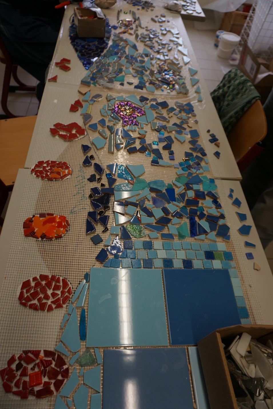 Und Robert Götze, vom Mehrwerg e.V., hat neben dem GTA-Fahrradwerkstatt bei uns auch Freude am Herstellen von Fliesen-Mosaiken.