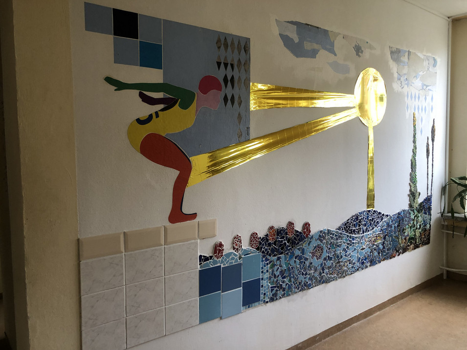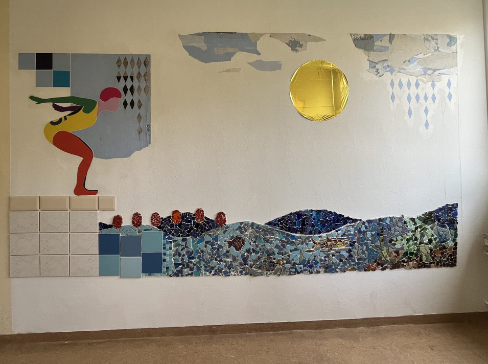 Es entstand ein Relief aus einer Mischung von Fliesen-Mosaik mit StreetArt…