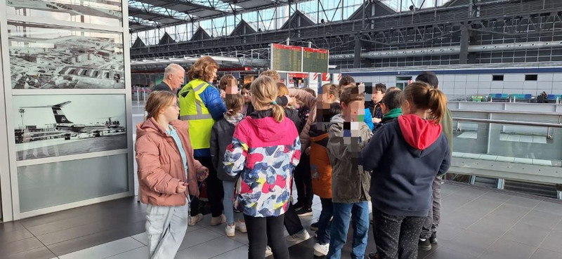 Am Dienstag, den 01.04.2025 machten die Klassen 4a und 4b einen spannenden Ausflug zum Dresdner Flughafen. Zuerst besuchten wir das Terminal, wo wir durch die Sicherheitskontrolle mussten und viel über die Abläufe am Flughafen lernten. Ein Flughafenmitarbeiter erklärte uns, wie Passagiere einchecken und welche Sicherheitsvorkehrungen wichtig sind. Danach gingen wir auf eine kleine Entdeckungstour rund um das Gelände und durften sogar in einen Bus steigen, der uns zu den großen Flugzeugen brachte. Besonders aufregend war es, die Flugzeuge beim Starten, Landen und Entladen der Koffer aus nächster Nähe zu beobachten.