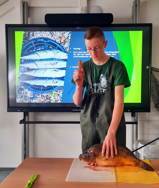Moritz Weigel entnahm vor den Augen der Jury einen Karpfen die Eingeweide. Die Jury staunte