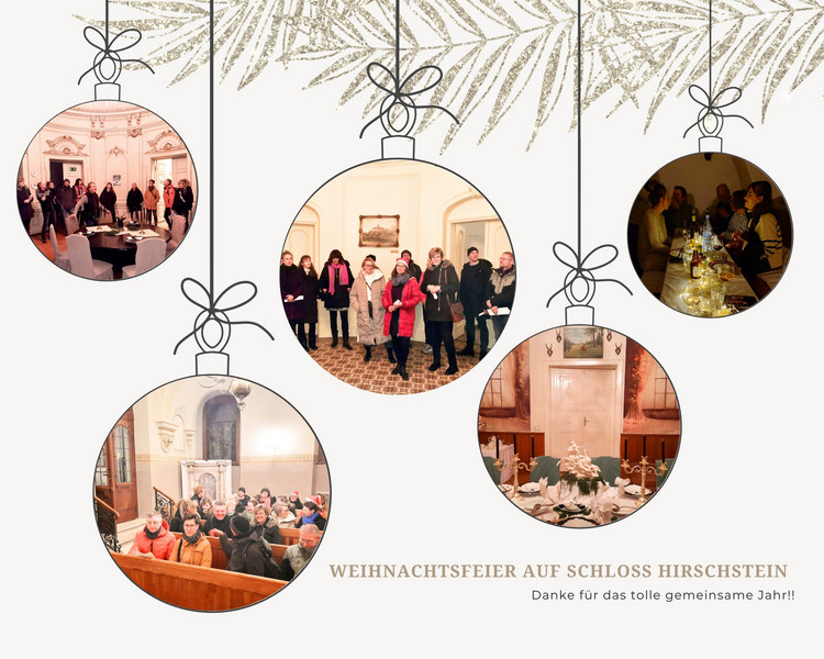 Heute, am 10. Dezember fand unsere diesjährige Weihnachtsfeier an einem ganz besonderen Ort statt: Schloss Hirschstein. Das Kollegium kam zusammen, um in festlicher Atmosphäre einen gemeinsamen Nachmittag zu verbringen, der uns noch lange in Erinnerung bleiben wird.