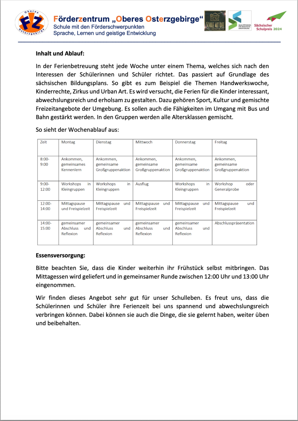 - 1. Angebot: Ferienbetreuung