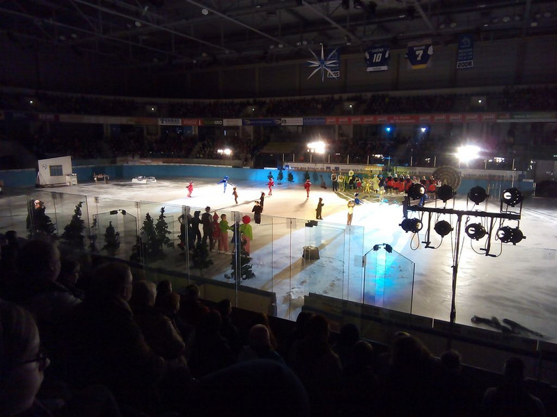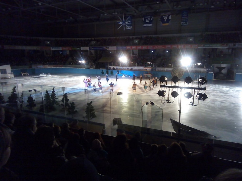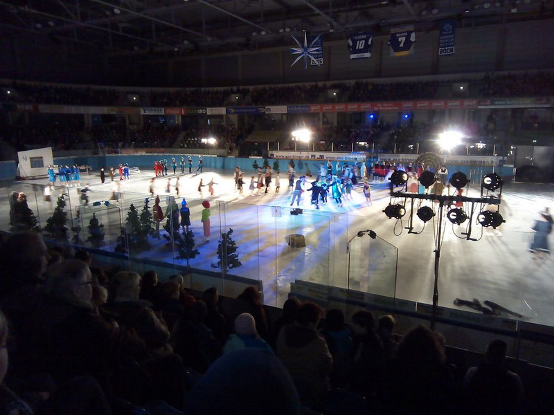 Pünktlich setzten uns die Fahrer an der Arena ab, wo auch schon viele andere Kinder und Jugendliche auf das Eismärchen über Pinocchio warteten.