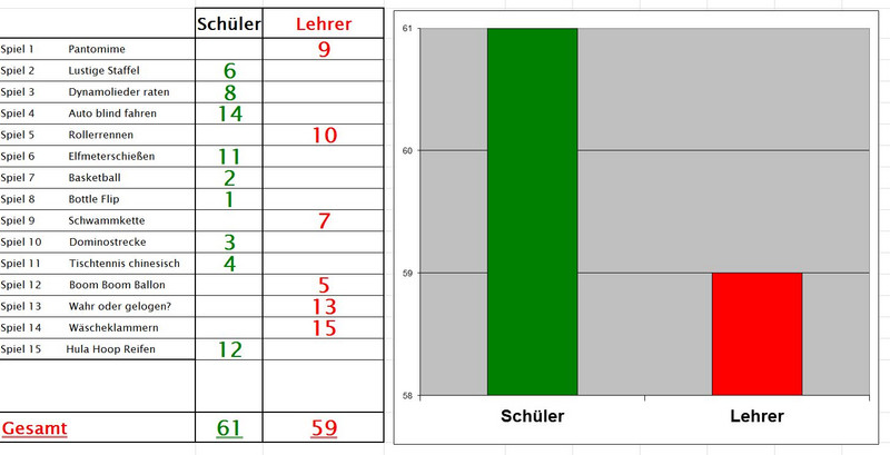 fand der 3. Spielwettbewerb "Schüler gegen Lehrer" statt.