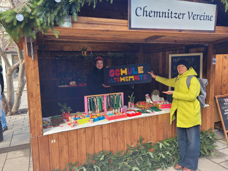 Danke an alle Schülerinnen, Schüler und Lehrkräfte, die fleißig mitgewerkelt haben, danke an alle, die den Stand auf dem Weihnachtsmarkt betreut haben! Und ein besonderer Dank an Ute Spindler, Kinder- und Jugendbeauftragte der Stadt Chemnitz.