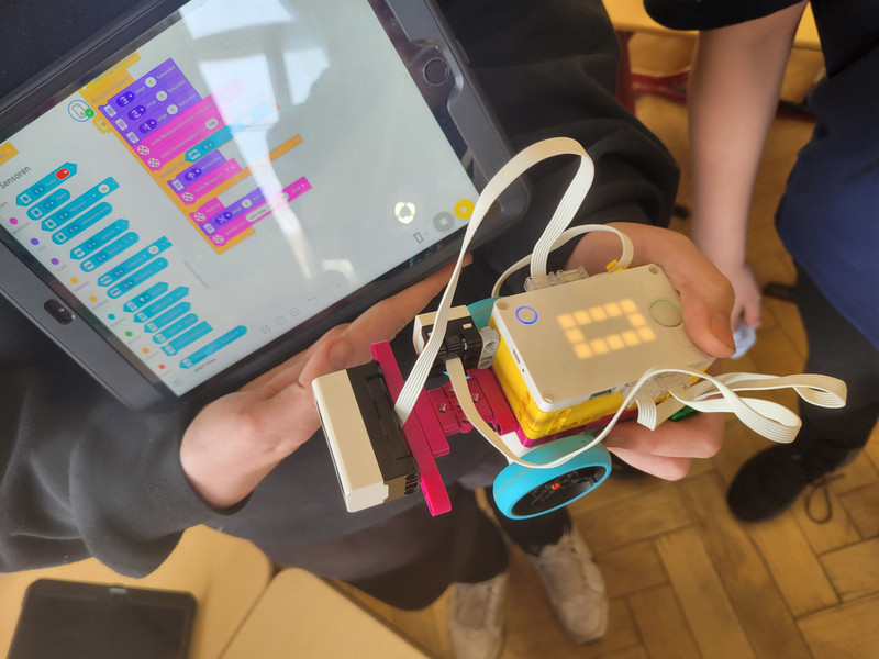 Für die beiden 8. Klassen gab es vor Ostern eine Osterbastelei der ganz anderen Art. Das Team von edmedien Leipzig baute mit den Schülerinnen und Schülern selbstfahrende Roboter. Die wurden natürlich noch so programmiert, dass sie alle Hindernisse umfahren. Hat Spaß gemacht!