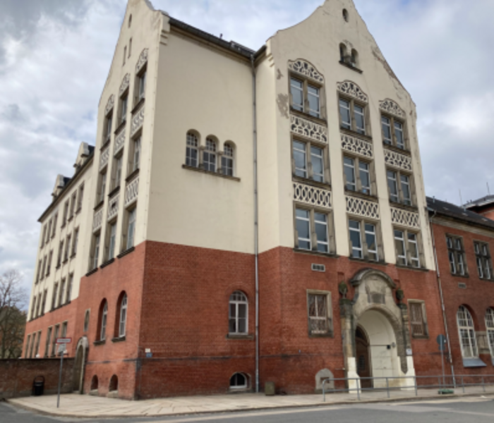 Die Schule zieht für den Zeitraum der Sanierung in die Philippstraße 20 auf den Sonnenberg. Das Gebäude der ehemaligen Georg-Weerth-Oberschule hat seine ganz eigene Geschichte. Es ist ebenfalls eines der ältesten Schulgebäude in Chemnitz (erbaut 1906/07) und architektonisch ein Zeugnis Chemnitzer Industriekultur.