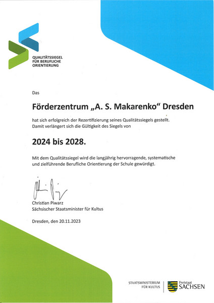 Berufsorientierung an der Makarenko-Schule. Ausgezeichnet. Seit 2008 mit Siegel.