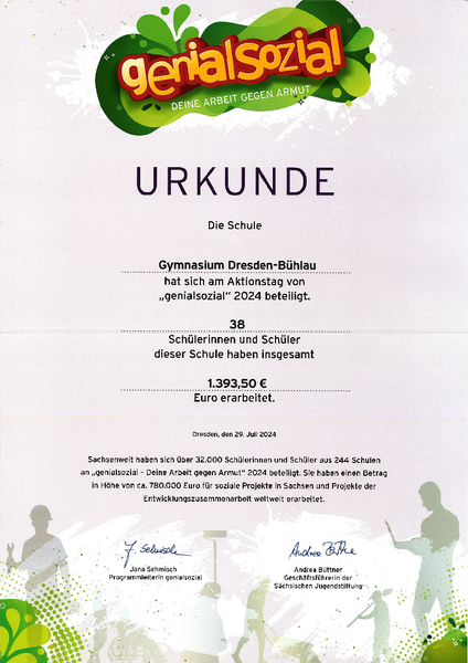 Unser Gymnasium hat auch 2024 wieder am Aktionstag „genialsozial – Deine Arbeit gegen Armut“ teilgenommen.