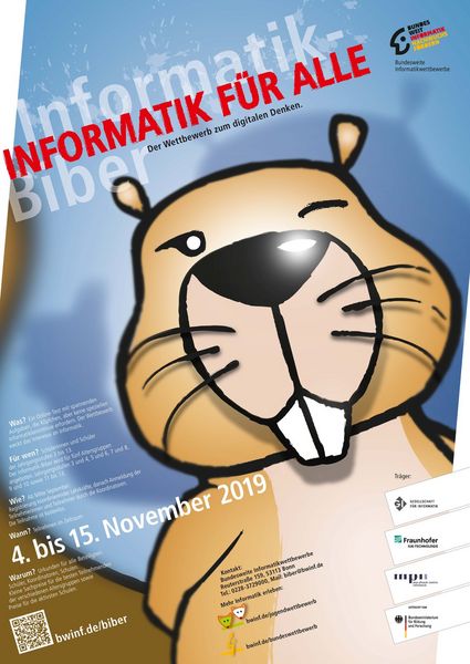 In diesem Schuljahr findet der Informatik-Biber im Zeitraum vom 4.11.19 bis 15.11.19 statt. Alle Schüler beteiligen sich an diesem online-Wettbewerb. Diese Hinweise und die Hinweise auf dem Vertretungsplan sind zu beachten.