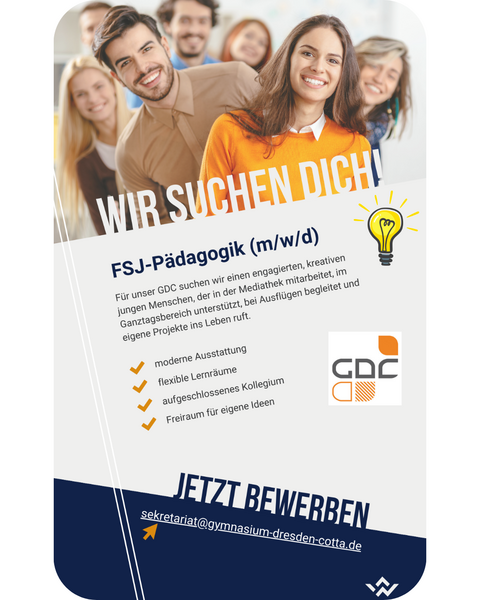 Bei Interesse melden Sie sich über gymnasium-dresden-cotta(at)arcor(dot)de und wir vereinbaren ein erstes Kennenlerngespräch.