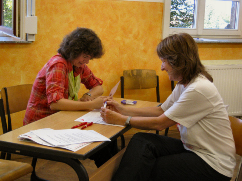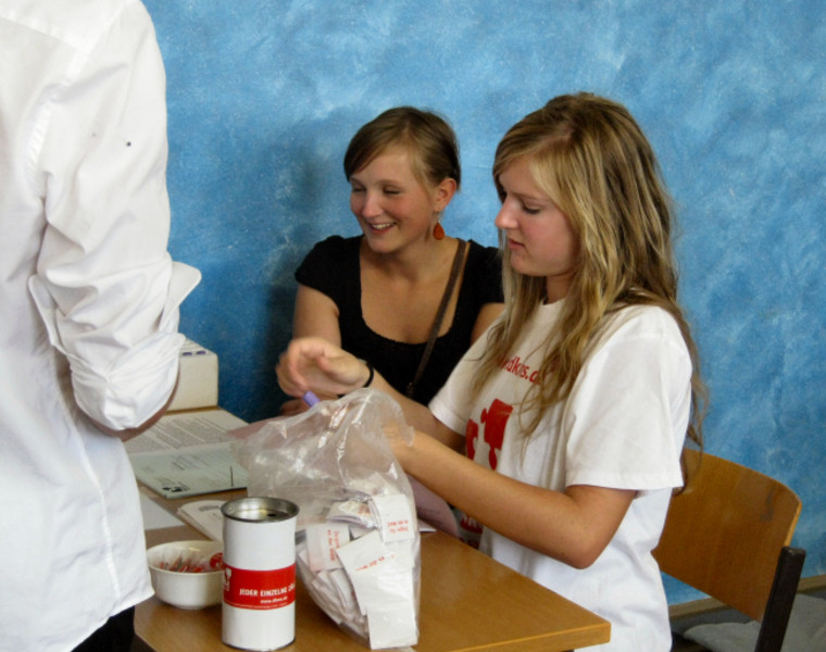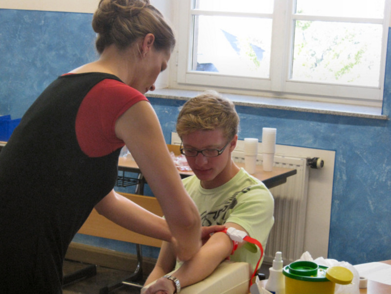 Der Vormittag begann mit einem sehr interessanten Gespräch mit Björn Matthes, einem ehemaligen Schüler unseres Gymnasiums, der vor einigen Jahren bereits als Spender benötigt wurde. Sehr engagiert berichtete er u.a. von seinen Gefühlen bei dieser Aktion.