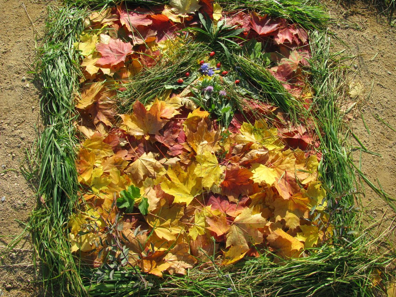 Beim Sammeln von Naturmaterialien und dem Gestalten von farbigen Bildern im Freien, kamen die Schüler nach einigen Versuchen schnell auf die Idee, Ordnung in das "Chaos" der Natur bringen zu müssen. So entstanden folgenden Bilder.