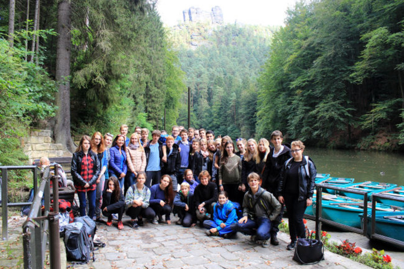 Der Wetterumschwung bereitete den meisten keine große Freude, am Montag standen für unsere Gäste dennoch die Porzellan-Manufaktur und Stadterkundung in Meißen auf dem Plan. Während die Schüler der Klasse 11 am Dienstag die Schule besuchten, ging es für die Sankt Petersburger und die komplette Klasse 10/1 unter Begleitung von Frau Neumann und Herrn Richter (Referendar) ins Elbsandsteingebirge (Sächsische Schweiz). Unsere Wanderung führte von Stadt Wehlen über die berühmte Bastei nach Rathen, wo auf dem Amselsee noch einmal Boot gefahren werden konnte.