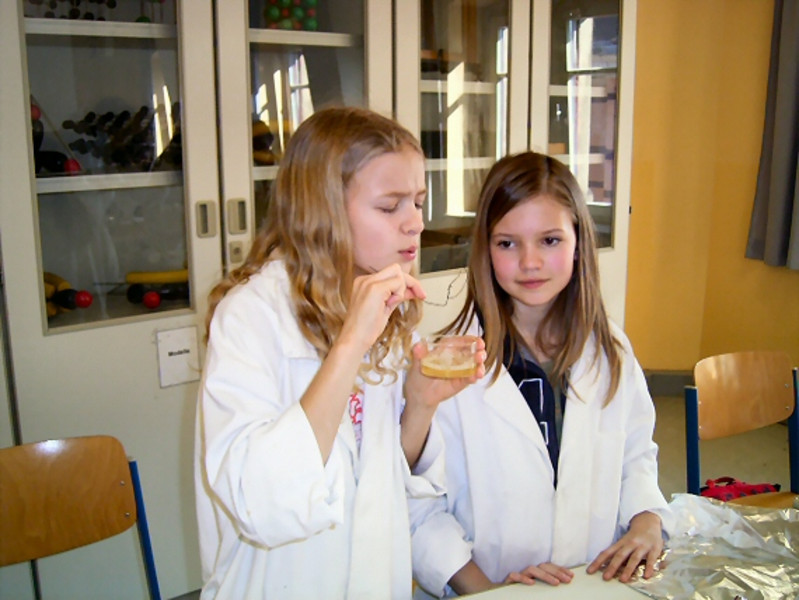 - Intensive Recherchen zu den verschiedensten Gebieten der Chemie im Rahmen des Wettbewerbs "Chemie - die stimmt" nahmen in diesem Schuljahr wieder einige Schüler auf sich, auch wenn der Einsatz vieler frischer Eier zu Forschungszwecken wohl nicht immer im Sinne der Eltern war.