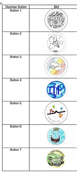 Wir dürfen gespannt sein, welcher der 7 Buttonentwürfe am häufigsten bestellt wurde! Aber auch das erfahren wir am Schulfesttag!