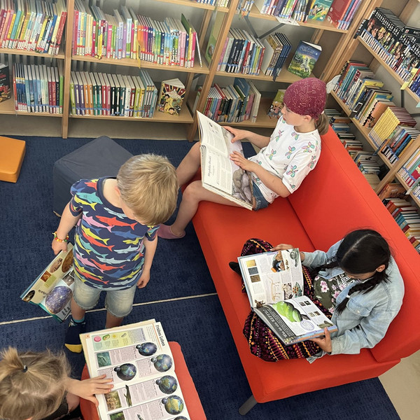 Unsere Schulbibliothek wird vormittags von den Klassen und Lerngruppen genutzt. Dank vieler Helferinnen und Helfer ist sie außerdem jeden Nachmittag geöffnet.