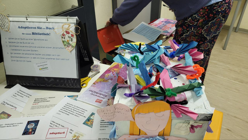Beim Weihnachtsmarkt 2024 haben wir daher unsere Bücheradoptionen gestartet. Und es wurden gleich an einem Nachmittag 21 Bücher von Familien für unsere Bibliothek "adoptiert". Vielen Dank!