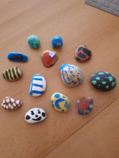 Mila aus der 2b hat Steine angemalt. Mila schreibt, im Waldpark gibt es einen Riesenspur von angemalten Steinen. Manche sind wirklich cool bemalt