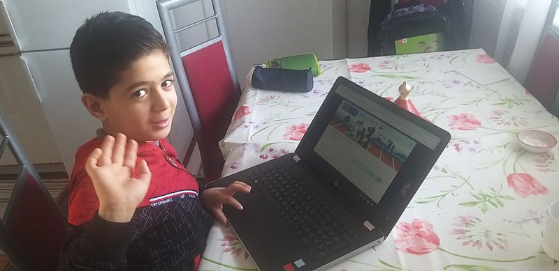 Taim (3c) grüßt aus dem KinderHomeOffice. Er vermisst seine Freunde.