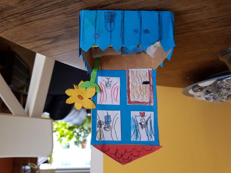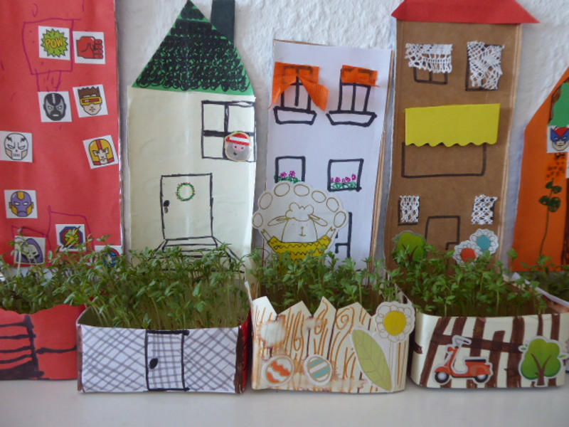 Frau Dopslaf hat Kressehäuser gebastelt.