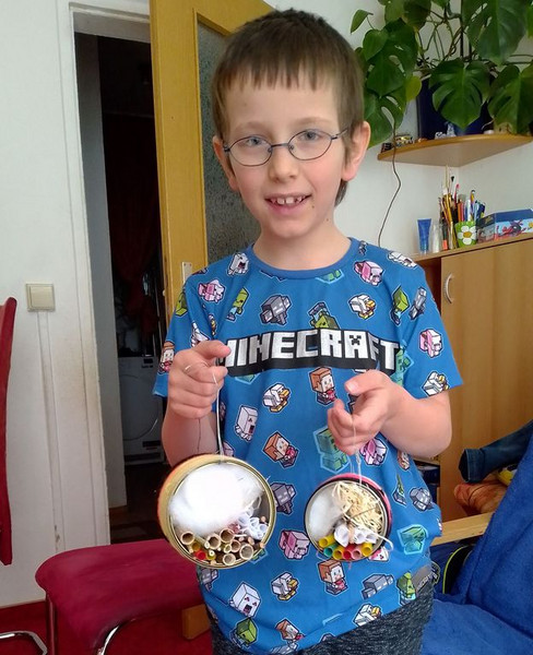 Fabrice aus der 3a hat ein Insektenhotel gebaut.