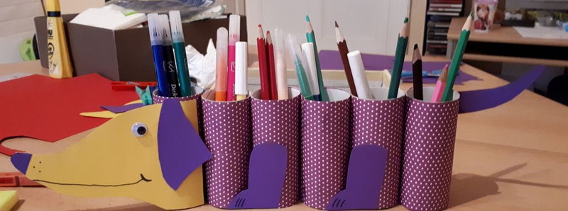 Mila aus der 2b hat einen tollen Stiftehalter gebastelt.