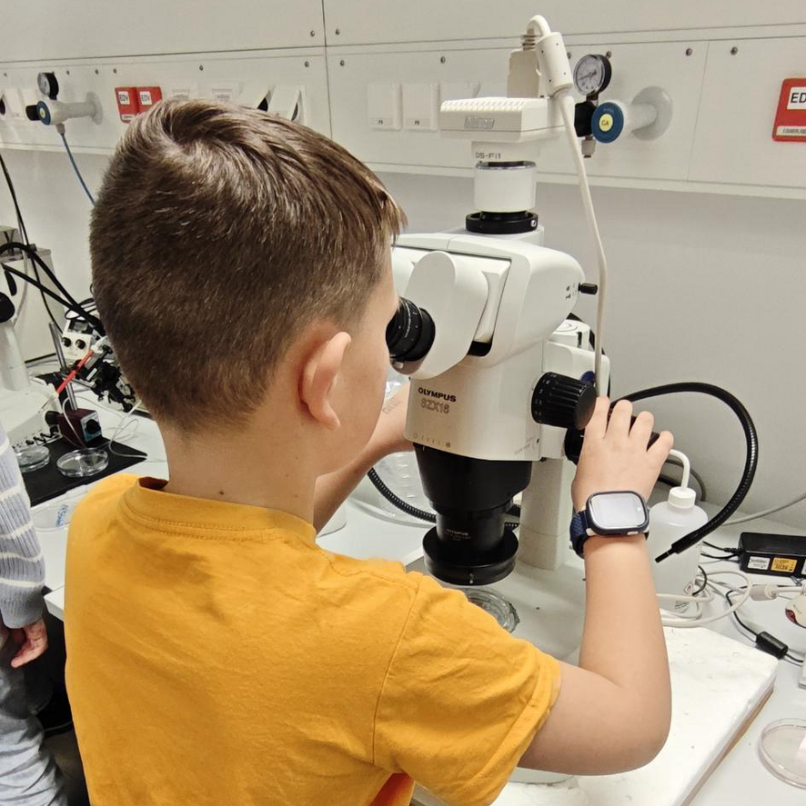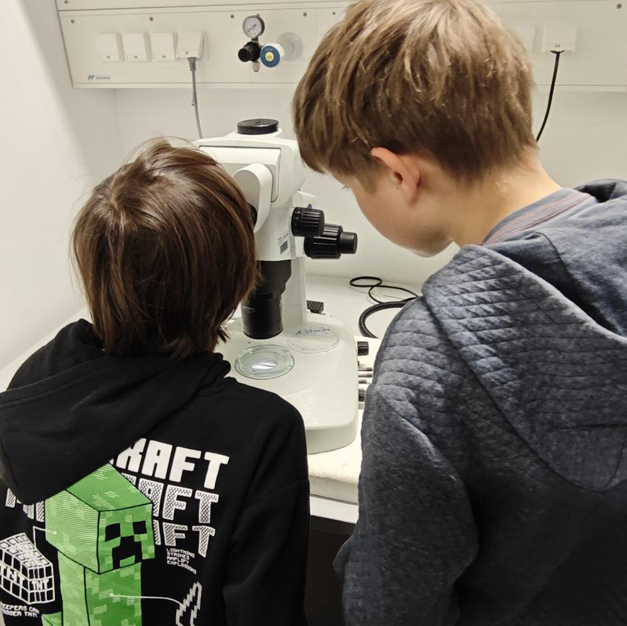 An unterschiedlichen Stationen konnten die Kinder selber praktisch werden und einen Einblick in die Arbeit in einem Labor erfahren. Unter anderem konnten am Mikroskop die unterschiedlichen Entwicklungsstadien von Zebrafischen selber beobachten werden und unter verschiedenfarbigem Licht, konnten sogar „leuchtende Fische“ entdeckt werden.