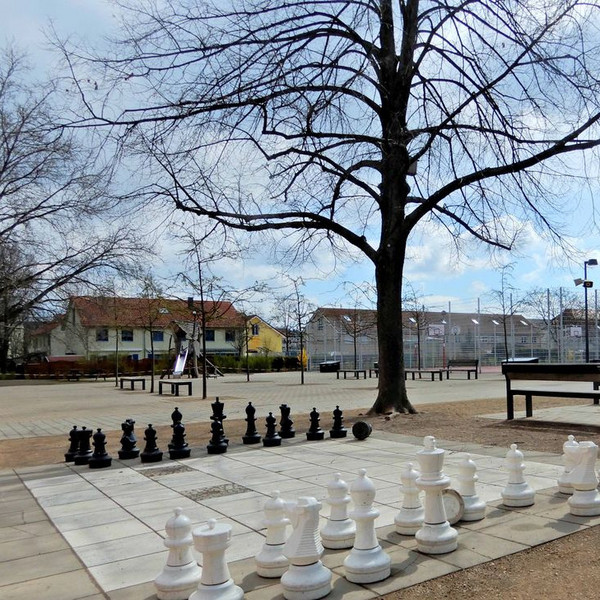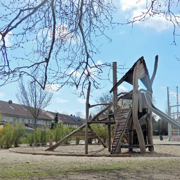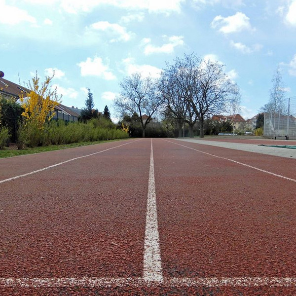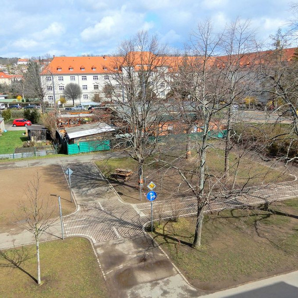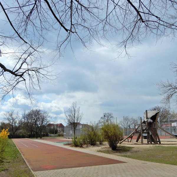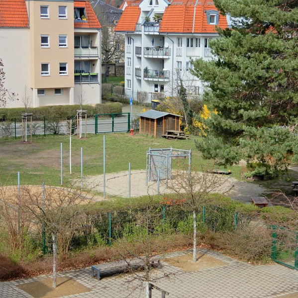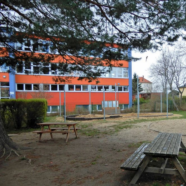 Die Kinder können täglich das großzügige Außengelände mit Verkehrs- und Hortgarten (inklusive "Bewegungsbaustelle"), Pausenhof (mit Spielgeräten) sowie Fußballplatz und Rasenflächen nutzen.
