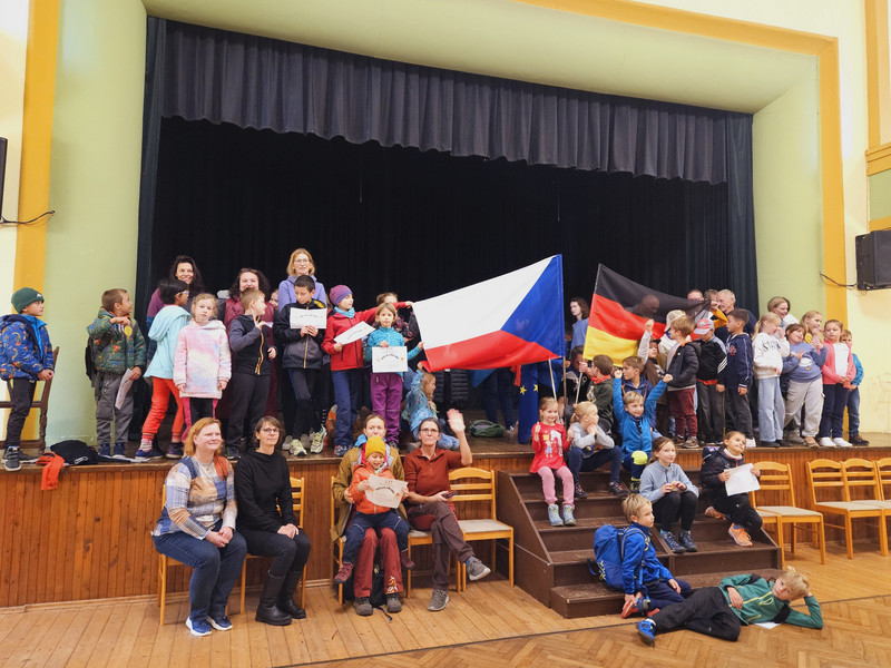 Der Förderverein unterstützt die nachbarschaftlichen Begegnungen mit tschechischen Kindern. So ging es am 11. Oktober früh mit dem Bus nach Tisa im Osterzgebirge, wo die Kinder in den tschechischen Unterricht schnuppern konnten. Danach gab es in den Tisaer Wänden einen Cross-Lauf mit Stationen, an denen die Kinder ihre interkulturellen Kommunikationsfähigkeiten unter Beweis stellen konnten.