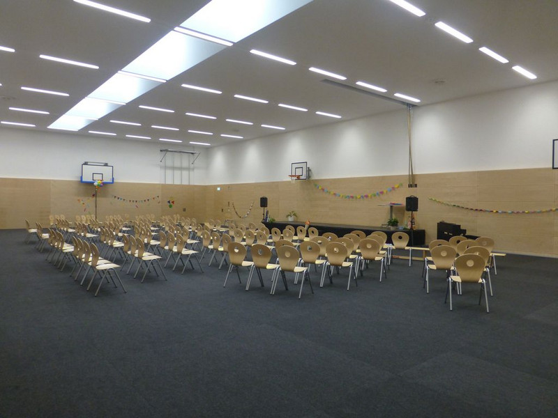 Die Turnhalle kann auch für Veranstaltungen wie hier der Schuleinführung genutzt werden.