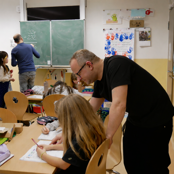 Gleichzeitig profitieren Lehrkräfte von der zusätzlichen pädagogischen Unterstützung im Klassenraum. In Zeiten, in denen sie bislang allein für eine Klasse verantwortlich waren, arbeiten sie nun einmal wöchentlich im Tandem mit einer weiteren Fachkraft. Besonders bei herausfordernden Unterrichtssituationen oder im Umgang mit einzelnen Kindern kann dies spürbar entlasten und mehr Raum für individuelle Förderung schaffen.