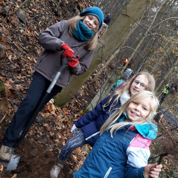 Bei der Pflanz-Aktion "Mein Baum - Mein Dresden" haben am 6.11.2019 Schülerinnen und Schüler der Klassen 2b und 4a tatkräftig mitgeholfen. Die Initiative von "Wilderness International" steht im Zeichen von Klimaschutz und CO2-Kompensation. Im Vorfeld galt es, ordentlich die Spendentrommel zu rühren, zum Beispiel bei einem Kuchenbasar. Auch der MDR Sachsenspiegel war zur Berichterstattung bei der größten Baumpflanz-Aktion Dresdens dabei.