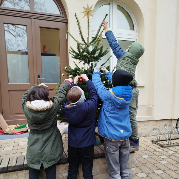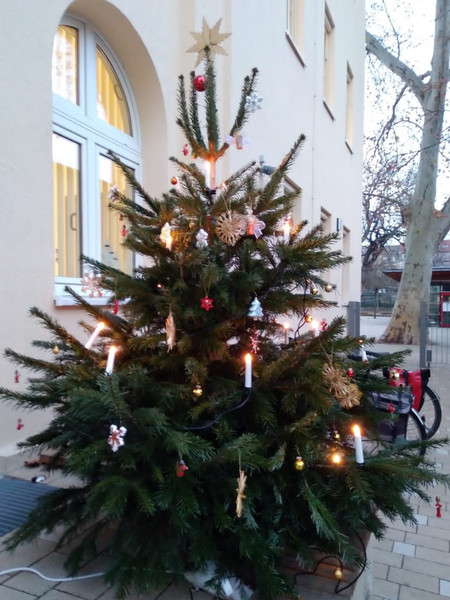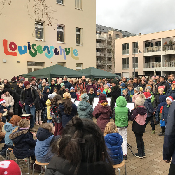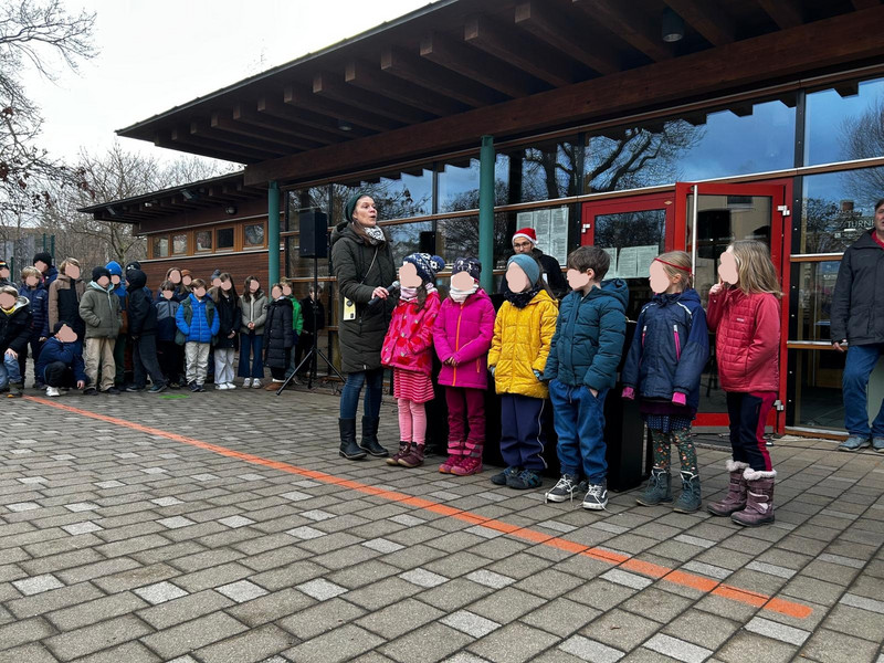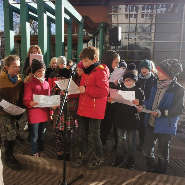 Am letzten Schultag vor den Weihnachtsferien erklangen auf unserem Hof Advents- und Weihnachtslieder. Jede Klassenstufe hatte sich auf ein anderes Lied vorbereitet. Mit "Oh, es riecht gut", der "Weihnachtsbäckerei", "This little light of mine", dem "Kleinen Trommlerjungen" und unserem Schul-Hit "Singen wir im Schein der Kerzen" stimmten wir uns alle aufs Fest und die Feiertage ein.