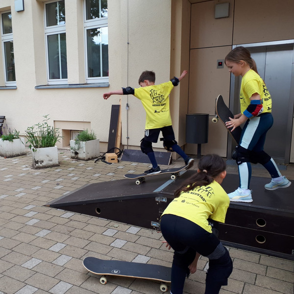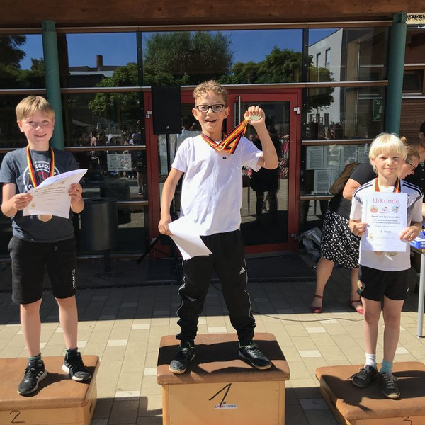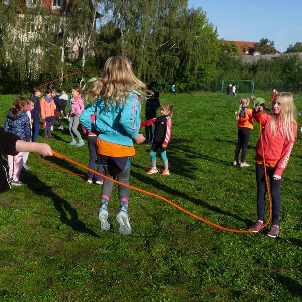 Was für ein Glück: zwischen einigen Regentagen meinte es der Wettergott am 31. Mai richtig gut mit uns. Das Sportfest vorm Kindertag konnte wie geplant stattfinden. Auf dem Sportplatz, beim Parcours in der Halle, auf beiden Höfen, im Hortgarten und im Louisengrün war ordentlich was los. Dank vieler Helfer aus der Elternschaft und einer 8. Klasse vom Dreikönigsgymnasium gab es vom sportlichen Leichtathletik-Wettbewerb über Spiel-Stationen, Scater-Strecke bis zur Hüpfburg wieder alles, was das Kinder-Herz begehrte.