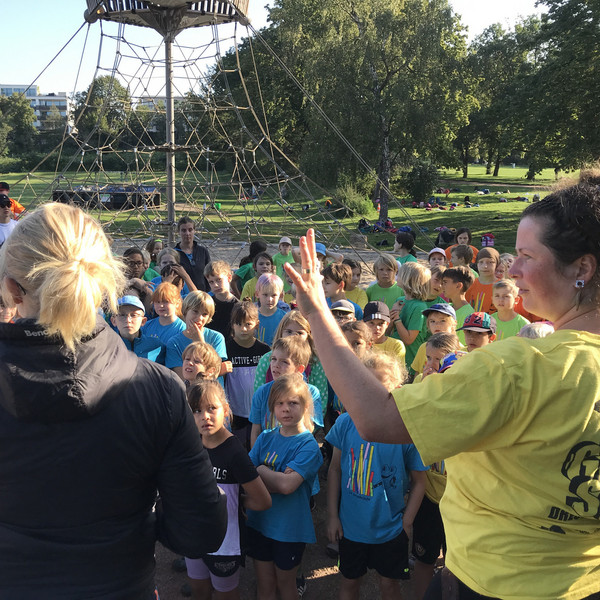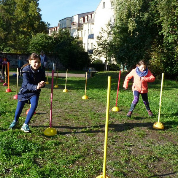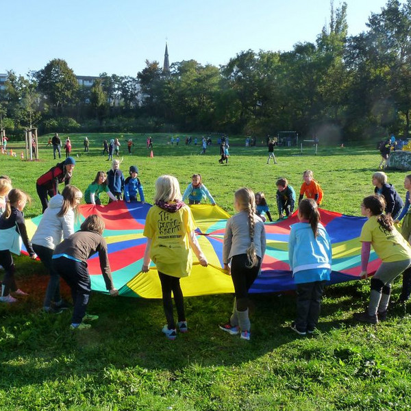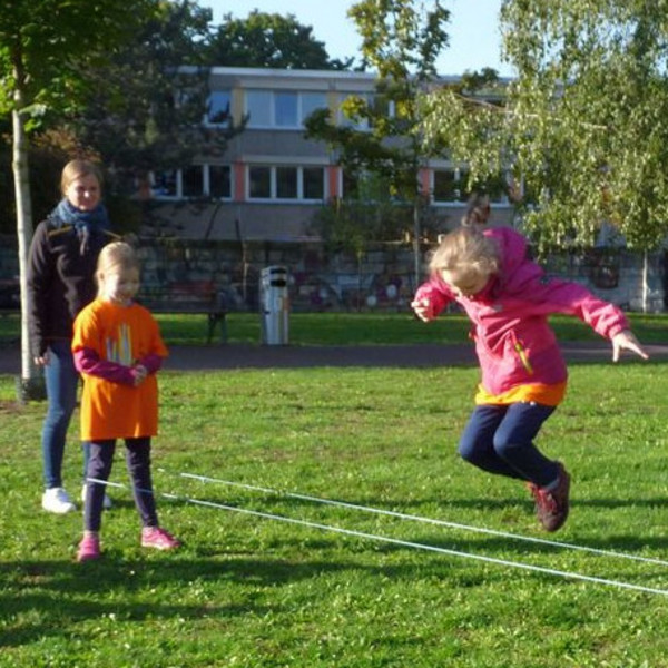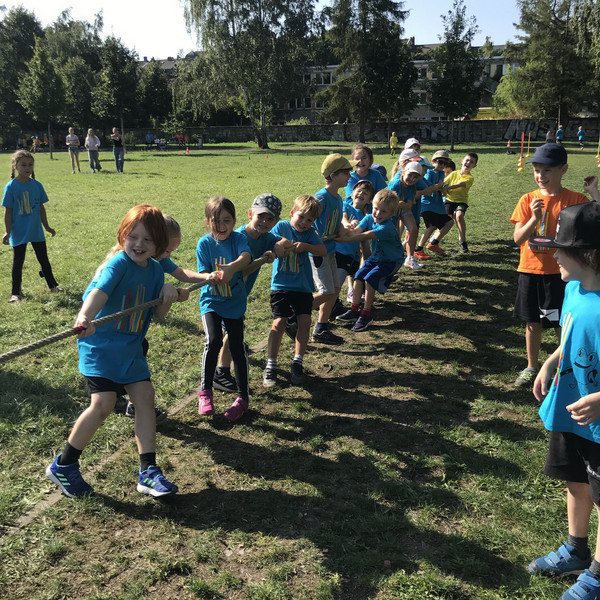 "Auf die Plätze, fertig, los!", hieß es bei unserem Sporttag am 8. September auf dem Alaunplatz. Bei bestem Wetter waren alle Klassen dabei. Gleichzeitig war dies der Auftakt für den Spendenlauf unseres Fördervereins, bei dem Schul- und Hortprojekte unterstützt werden sollen. Nach der ersten gemeinsamen Lauf-Runde konnte man sich an den unterschiedlichen Sport-Stationen ausprobieren, u. a. beim Klettern, Limbo-Dance, Frisbee, Federball oder beim Tauziehen.